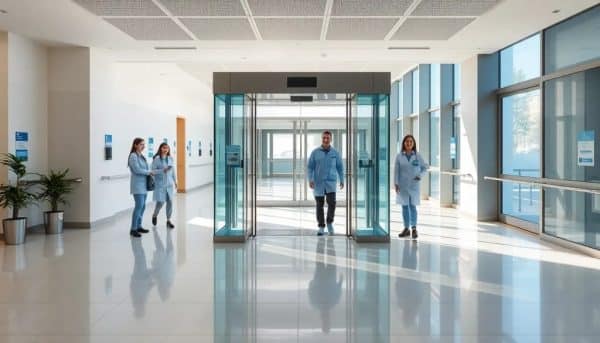 La seguridad es uno de los aspectos más críticos en hospitales y clínicas. Las puertas automáticas contribuyen a esta seguridad de diversas maneras: